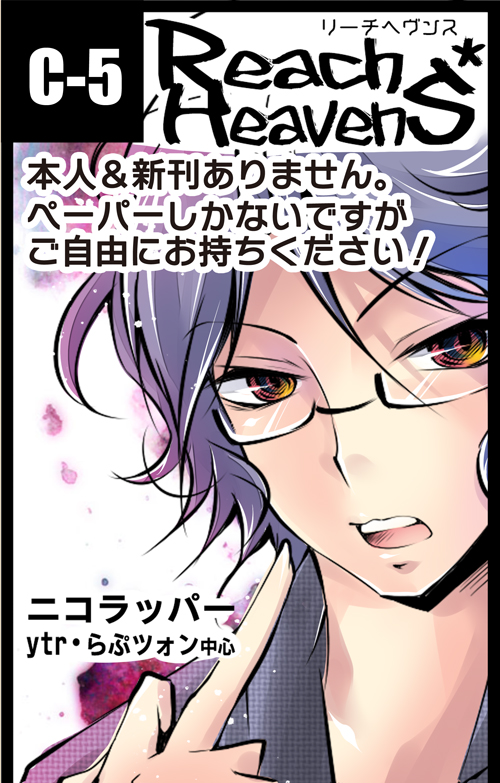 新刊、ゆと心情捏造本…出ませんでしたorz サークルカットに色塗ってPOPにしました。次こそはっ!!